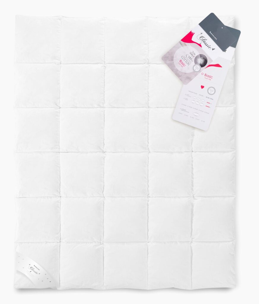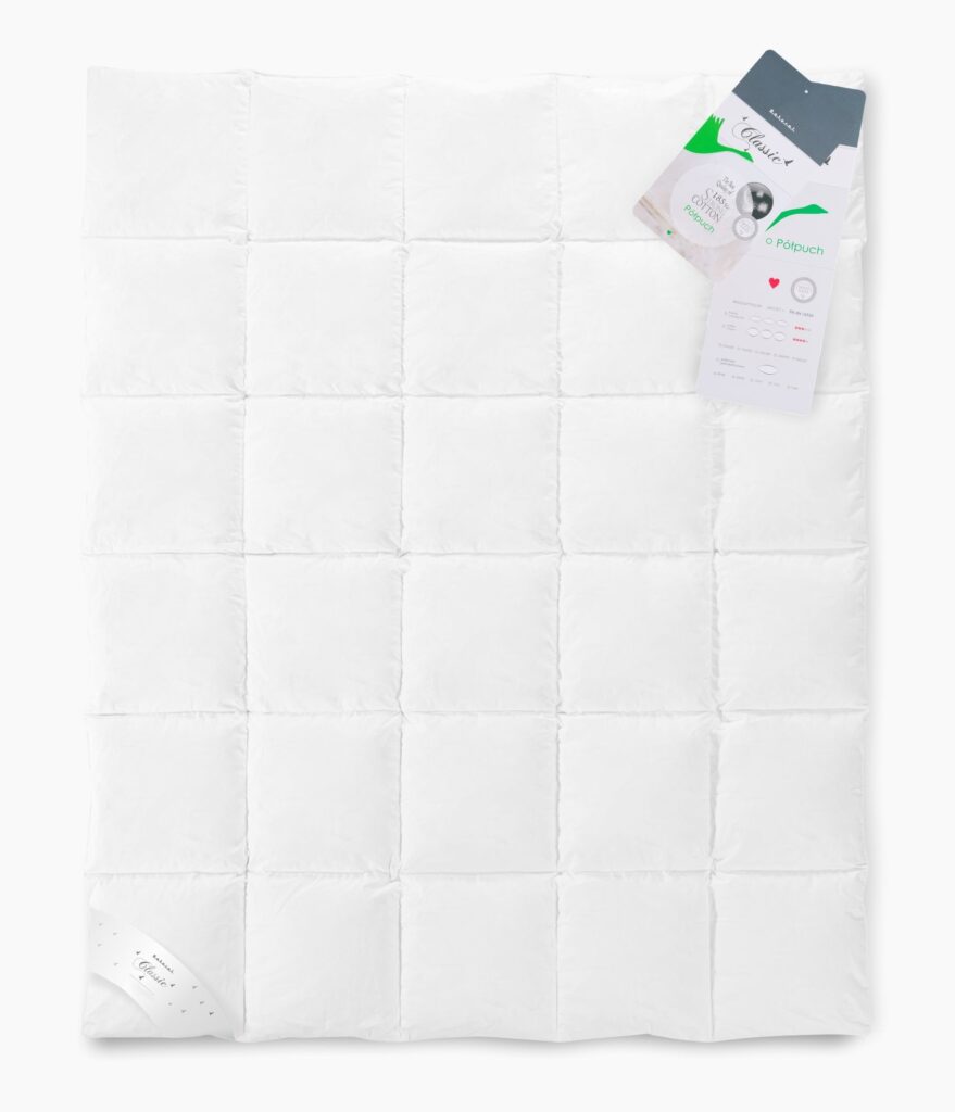 Całoroczna kołdra produkowana metodami tradycyjnymi, szyta w technologii zimnego szwu. Wypełniona puchem gęsim 20% oraz oraz 80% miękkimi piórkami.