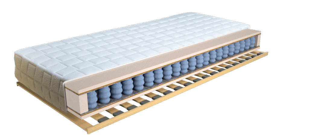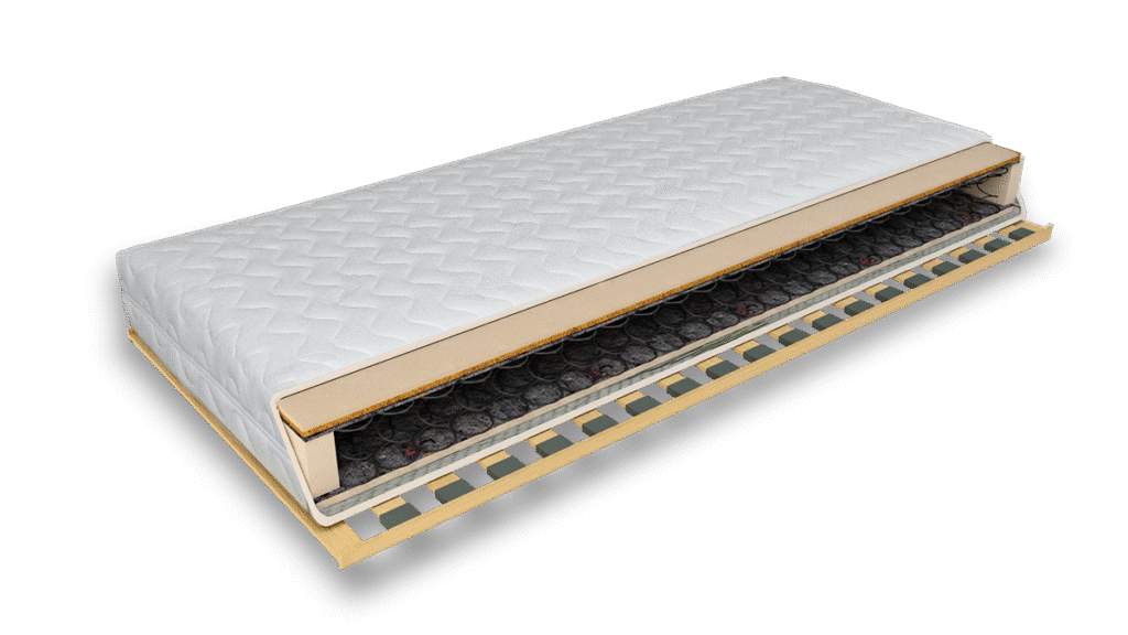 - Sprężyny kieszeniowe i mata kokosowa – redukują drgania i zapewniają zdrowe podparcie dla całego ciała.