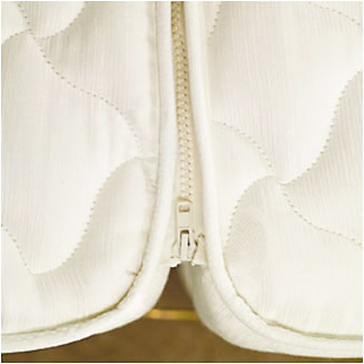 Pokrowiec wykonany jest z tkaniny zawierającej 100% poliester. Jest to materiał antyalergiczny, który ogranicza powstawanie mikroorganizmów i bakterii. Równomierna struktura włókna utrudnia brudzenie. Tkanina jest pikowana obustronnie antyalergiczną owatą o wadze 300 g/m². Pokrowiec wyposażony jest w zamek błyskawiczny, co ułatwia jego zdejmowanie. Pranie powinno odbywać się w temperaturze do 40°C.